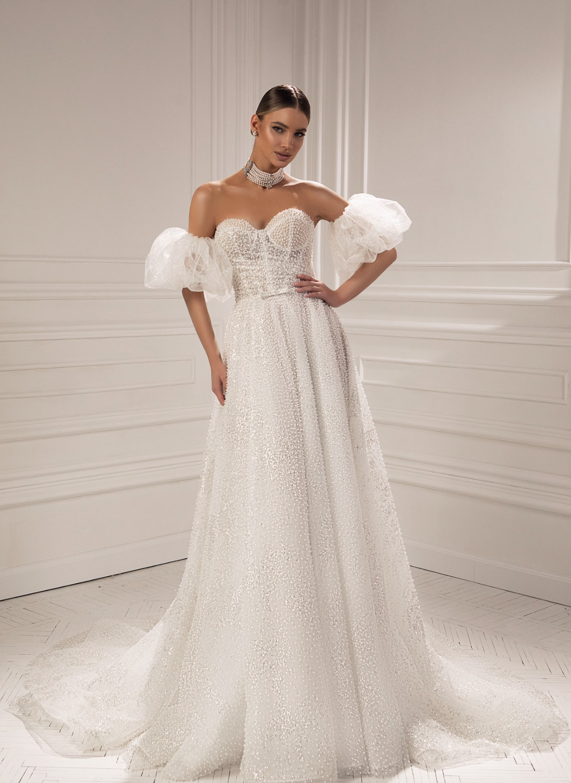 Experience Oksana Mukha,a world-renowned European designer of couture wedding dresses, bridal gowns and evening gowns